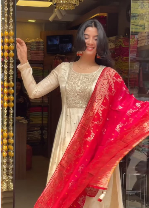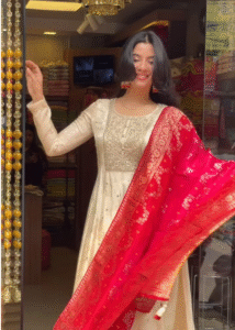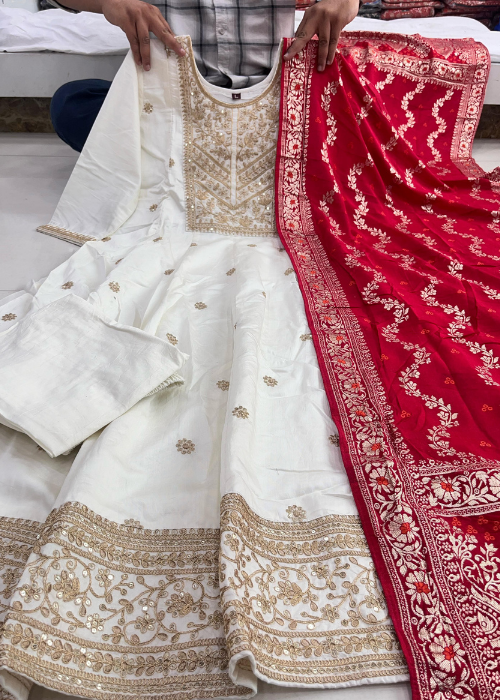 Paired with a Banarasi Silk dupatta and matching pant, this ensemble is perfect for festive occasions and special celebrations.